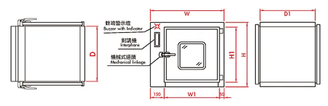 1.連鎖 Interlock 2.門禁警示裝置 Door open alarm 3.對講機 Interphone |